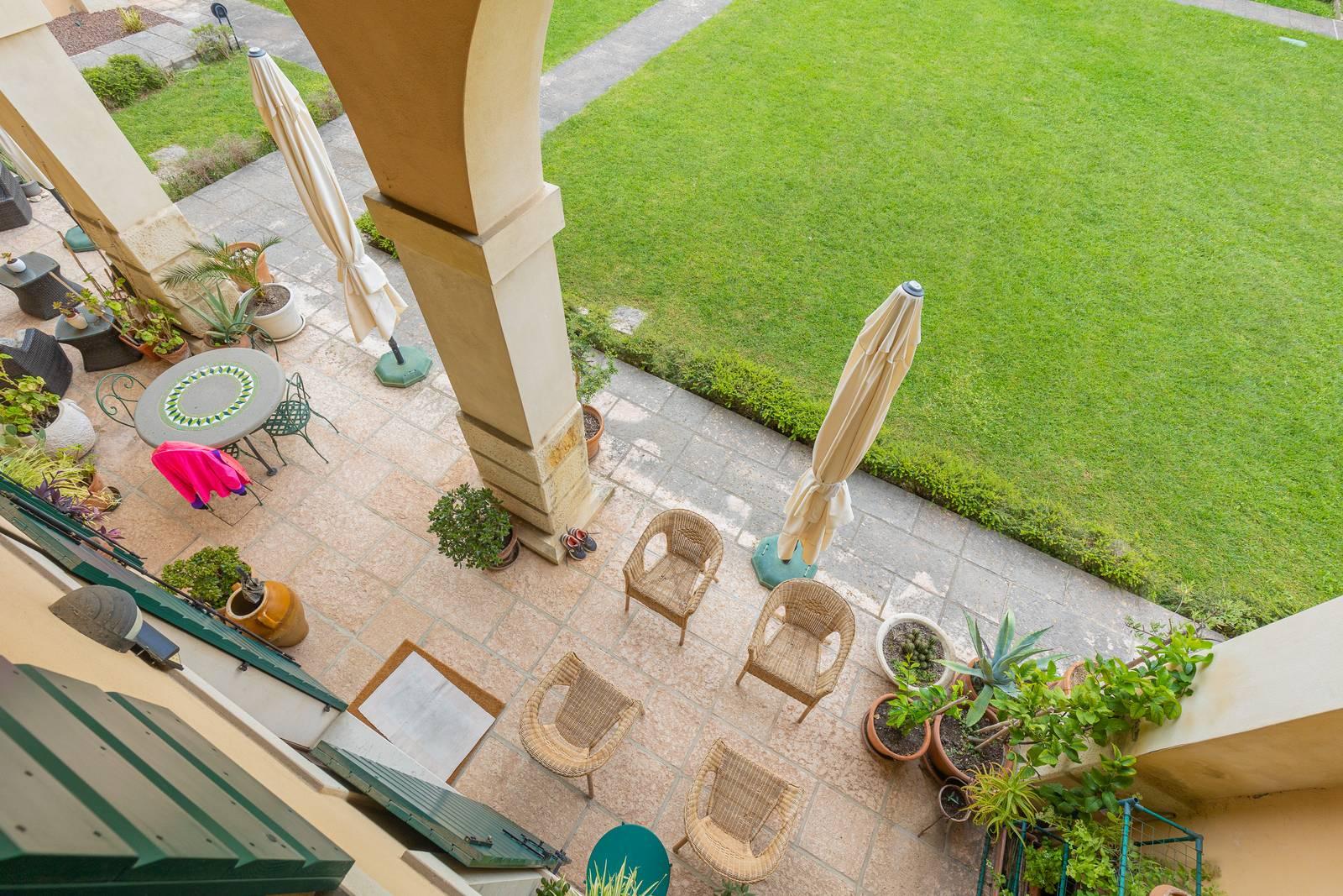 Il portico con l'area esclusiva presenti al piano terra, offrono la possibilità di poter soggiornare all'aperto circondati dalla tranquillità e dalla bellezza del contesto che si trova in questo contesto residenziale.