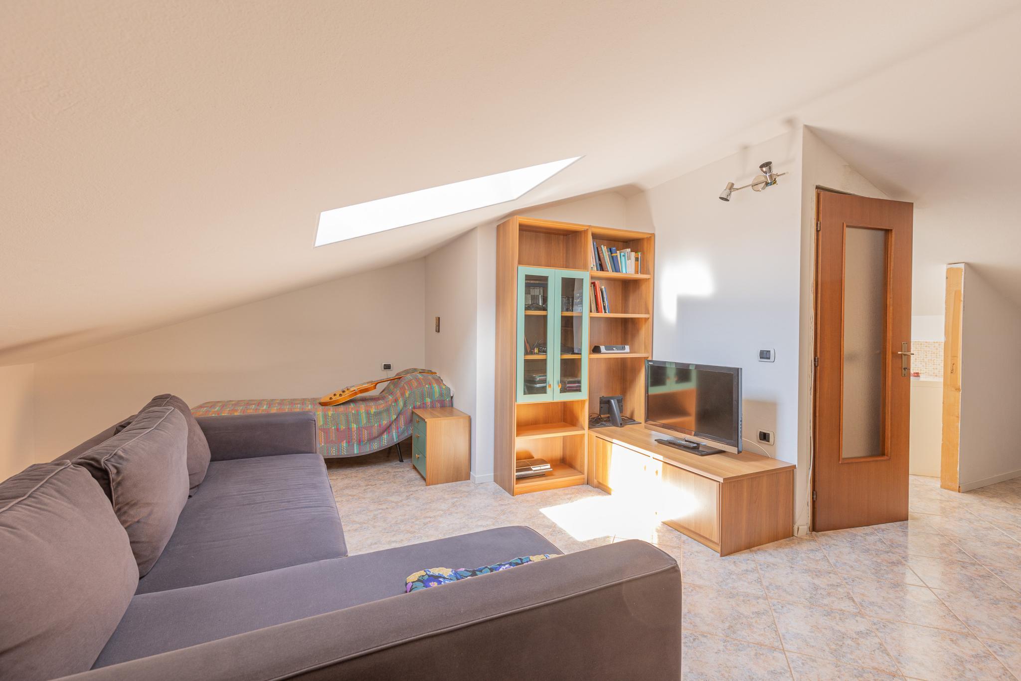 Tramite scala a giorno troviamo la zona notte composta da una camera da letto matrimoniale con bagno privato finestrato e con balcone, due camere singole di buone dimensioni ed un secondo bagno. Si prosegue al piano mansardato illuminato tramite velux dove è possibile ricavare una quarta camera o una stanza pluriuso.