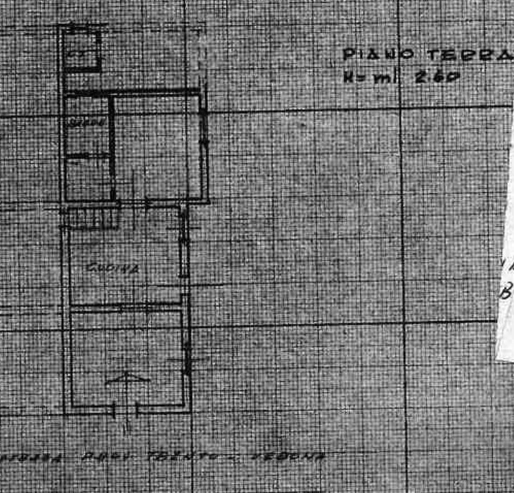 Dalla corte si accede al piano terra dove prende posto un appartamento con cucina, soggiorno, due camere e bagno.