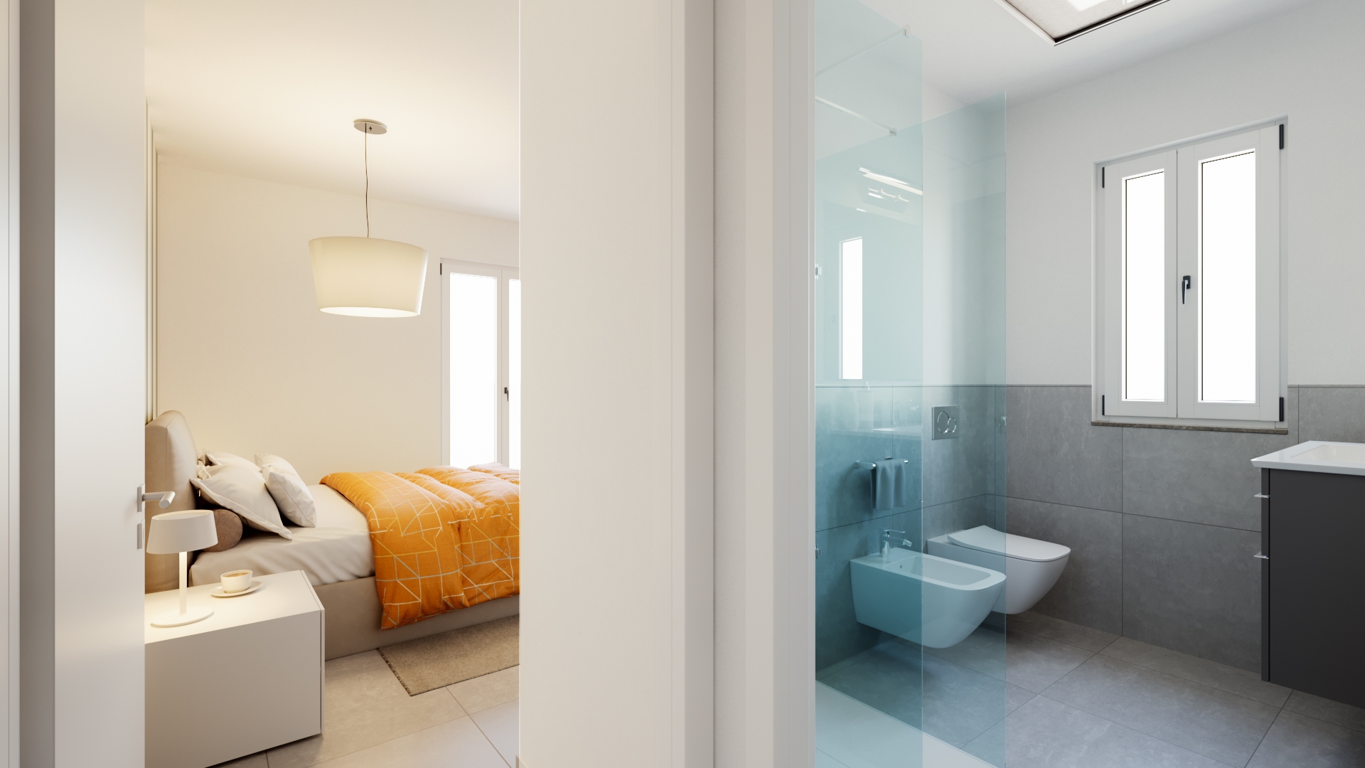 Ogni appartamento è aperto è libero su tre lati ed è completo di GARAGE DOPPIO e CANTINA (inclusi nel prezzo) di PROPRIETÀ.