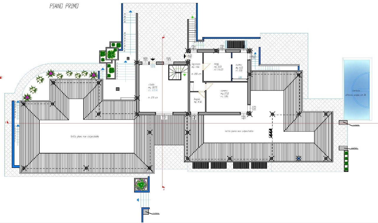 L'abitazione si sviluppa sui piani terra, primo e primo interrato con principale esposizione ad Ovest offrendo una meravigliosa veduta sul verde e colline circostanti.